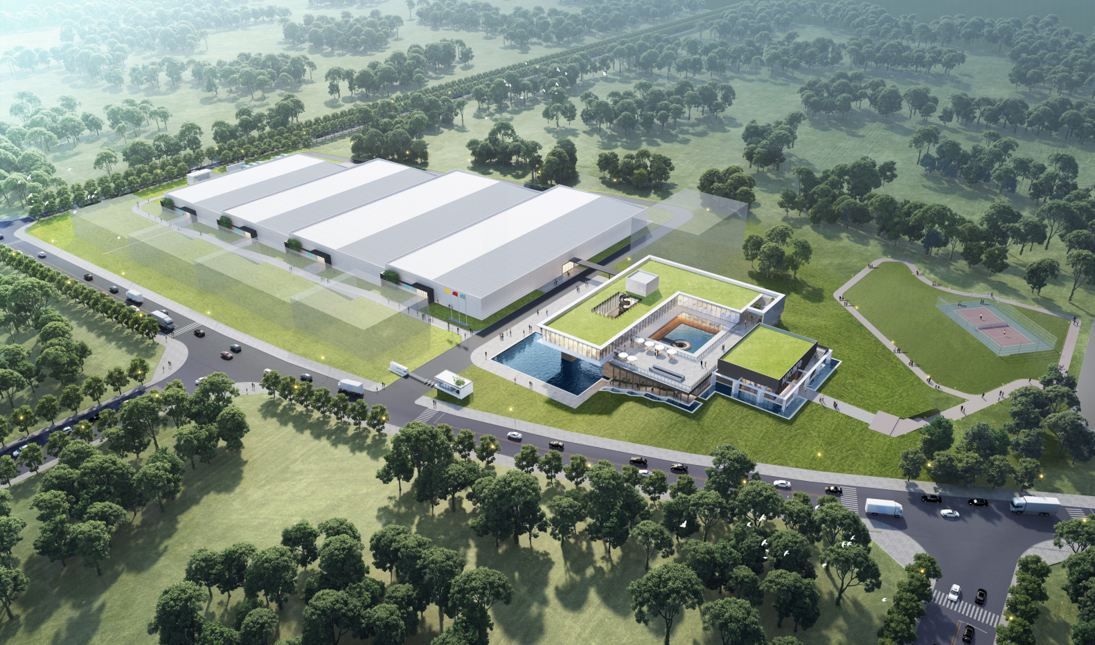 项目简介:强调规划布局的均好性——创造高效、便捷的厂区空间,良好的规划布局才能使整个生活舒适度最大化。 强调空间形态的多样性——营造丰富的建筑空间,整体空间形态上,通过景观轴线联系厂区与办公区,形成动静分区的整体格局。